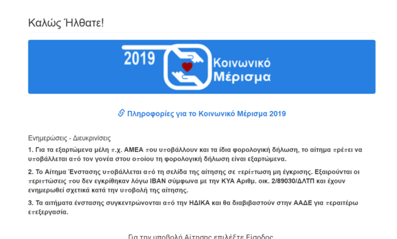Κοινωνικό μέρισμα 2019: Άνοιξε η ειδική σελίδα των ενστάσεων