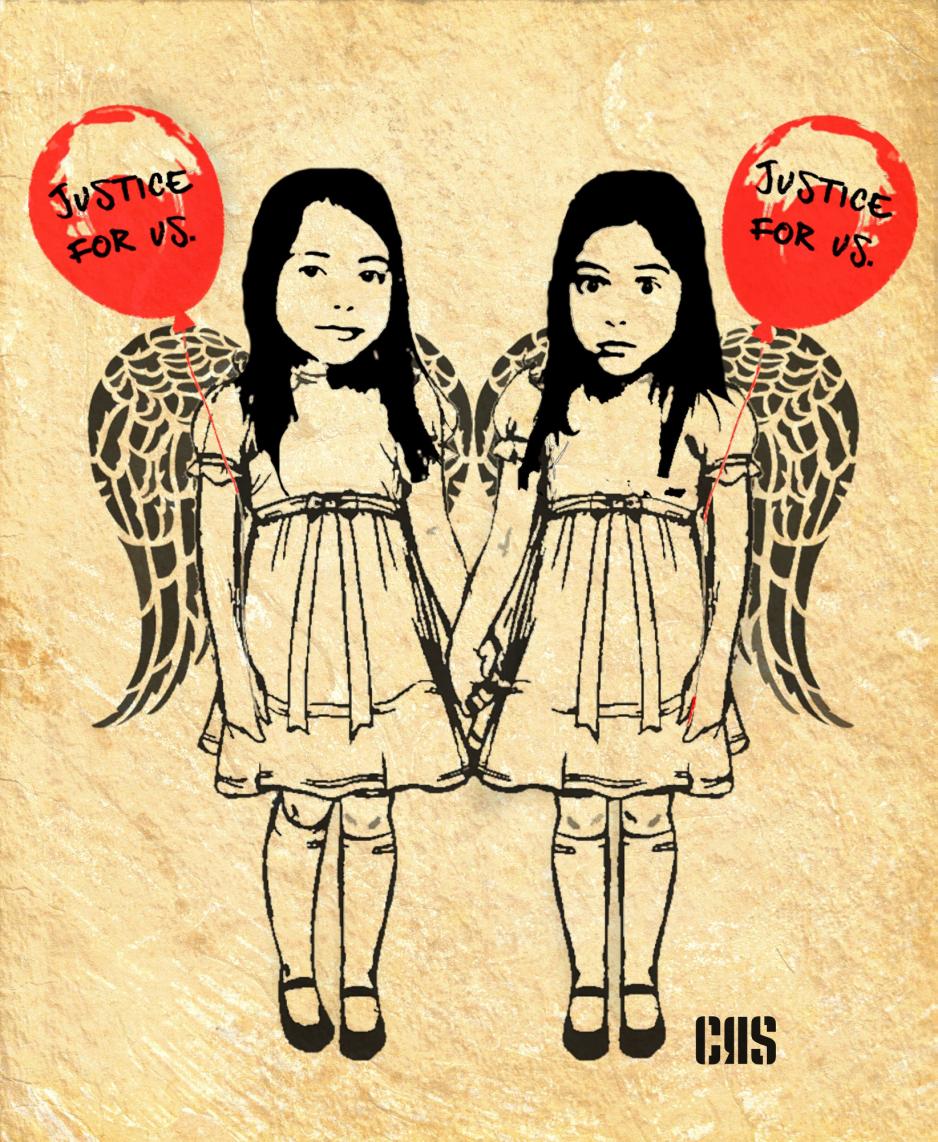 Ο καλλιτέχνης συγκλονισμένος από τον θάνατο των δίδυμων κοριτσιών που κάηκαν αγκαλιά με τους παππούδες τους στο Μάτι Αττικής ζωγράφισε τα δύο κορίτσια όπως εμφανίζονται στη φωτογραφία που έκανε το γύρο του κόσμου. Στα χέρια τους κρατάνε δύο μπαλόνια και αναζητούν τη δικαίωση.
