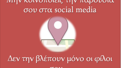 Η Ελληνική Αστυνομία προειδοποιεί: μην κοινοποιείτε την παρουσία (κατ’ επέκταση και την απουσία σας από το σπίτι) στα social media.…