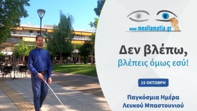 15 Οκτώβρη – Παγκόσμια Ημέρα Λευκού Μπαστουνιού των Τυφλών