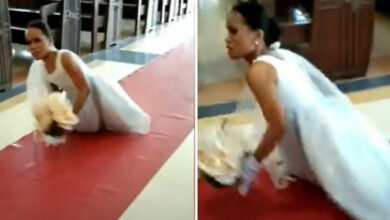 Αυτή είναι η συγκινητική στιγμή που μια νύφη που γεννήθηκε χωρίς πόδια βρίσκει τη συγκλονιστική δύναμη για να περπατήσει με…