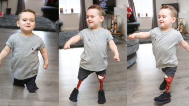 Αγόρι τριών ετών που έχασε τα πόδια του από μηνιγγίτιδα, περπατάει ξανά με προσθετικά άκρα και συγκινεί