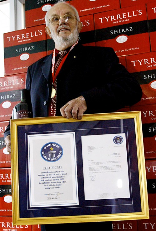 Ο Τζέιμς Χάρισον υπήρξε δωρητής αίματος για 60 χρόνια καθώς το αίμα του είναι σπάνιο και σωτήριο για εκατομμύρια ανθρώπους.